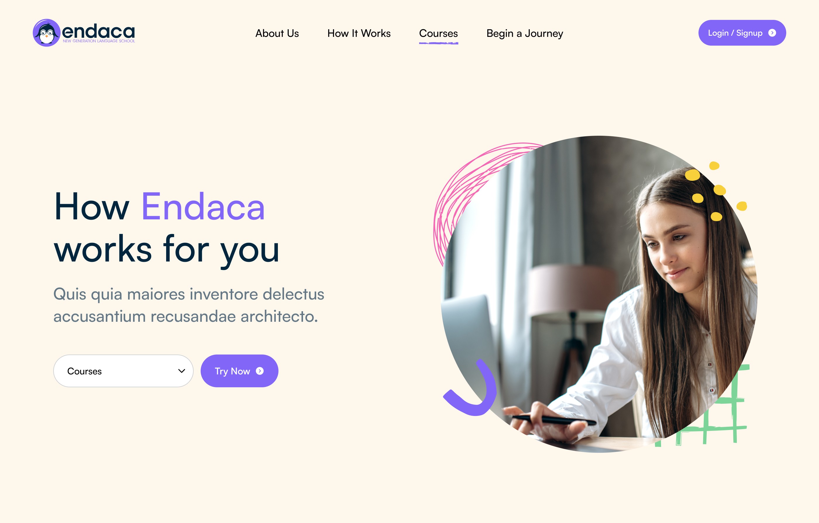 Endaca is an online learning platform founded in 2011 and expanded through a partnership with SUL Language Schools in 2014. Originally focused on English, it now offers personalized learning across IELTS, TOEFL, SAT, AP, IB, and more.