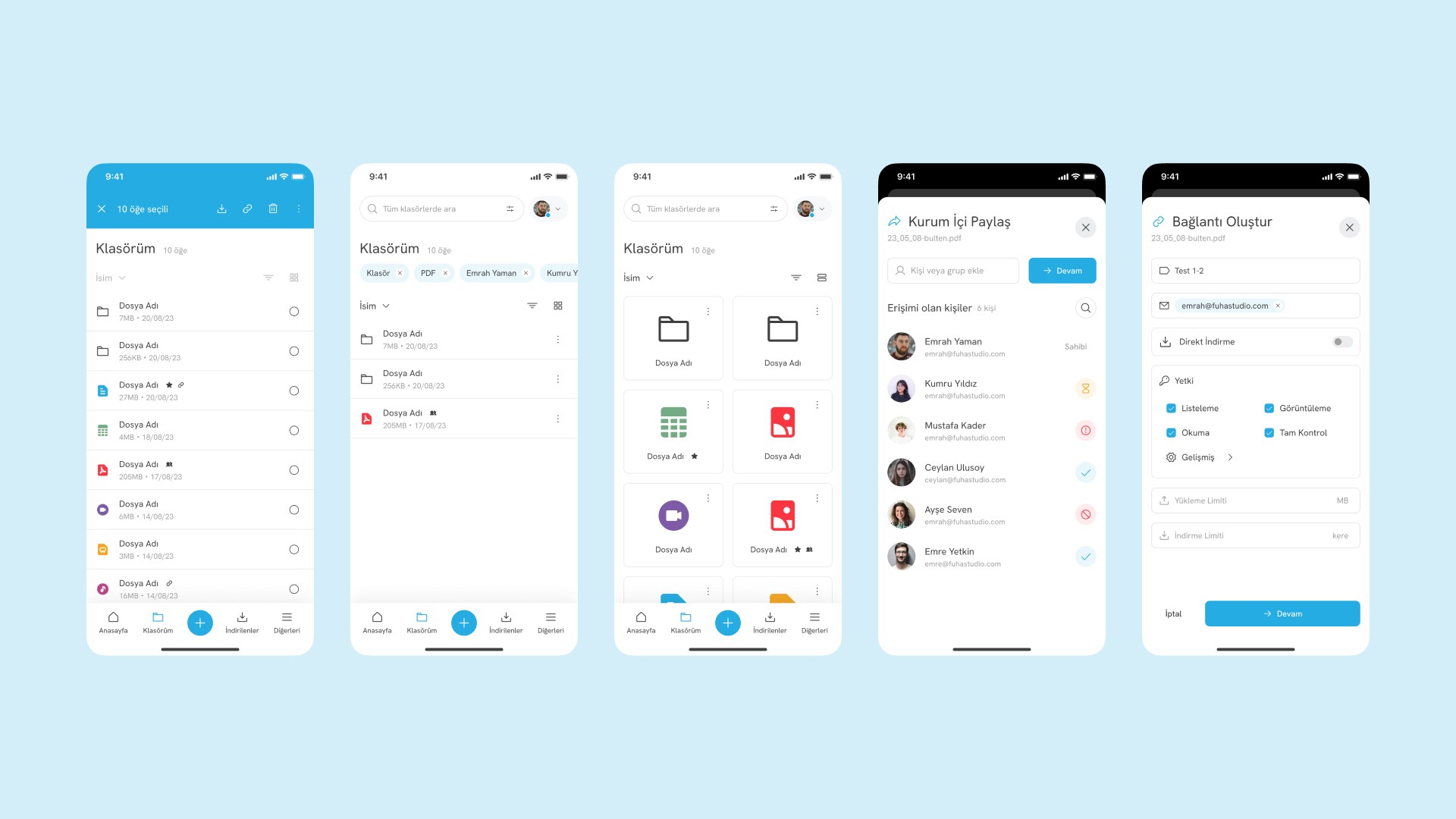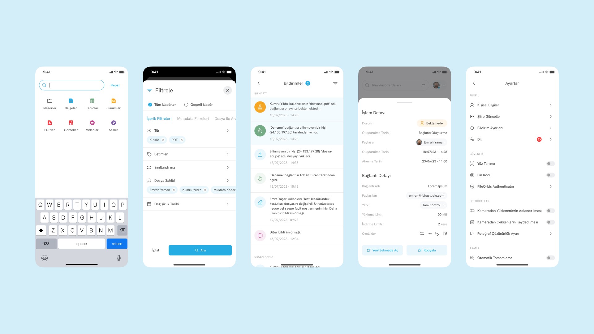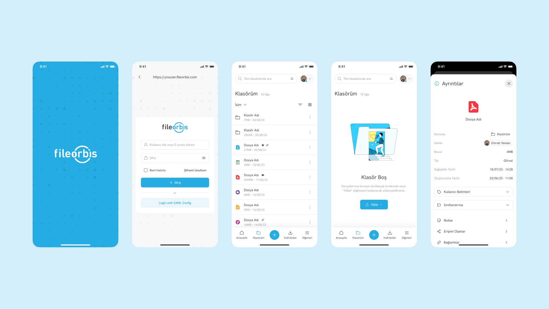 The experience designed for FileOrbis was not limited to desktop, but extended to cover both responsive web and mobile application screens. To ensure continuity across platforms, mobile app interfaces for FileOrbis were developed using a unified design system.