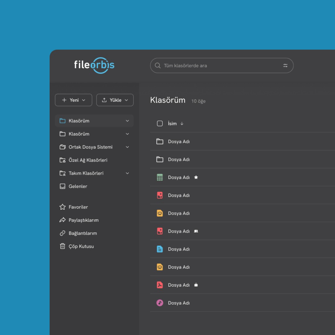 FileOrbis is a secure file management platform that enables organizations to manage their corporate documents through a centralized, controlled, and protected system. By bringing together critical capabilities such as authorization, access control, and secure file sharing, FileOrbis aims to enhance both data security and operational efficiency.