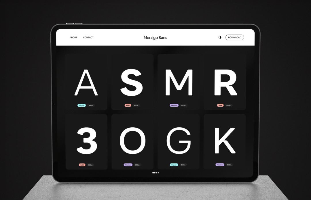 To introduce Merzigo Sans, we designed and developed a comprehensive showcase website. We built the platform to allow users to directly engage with the font, transforming the typeface into a dynamic digital experience rather than a static display. We integrated interactive tools that enable users to test various weights and examine the full character set in detail.