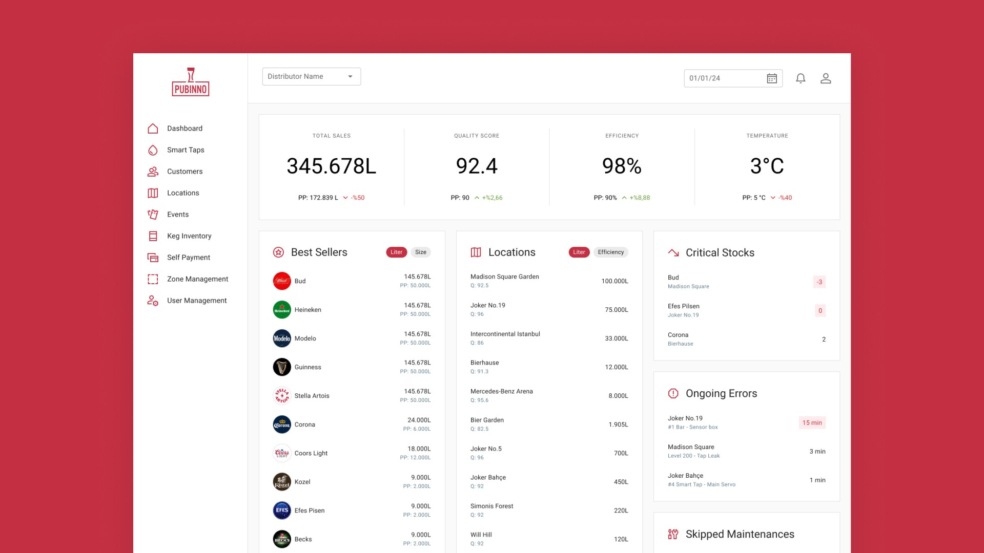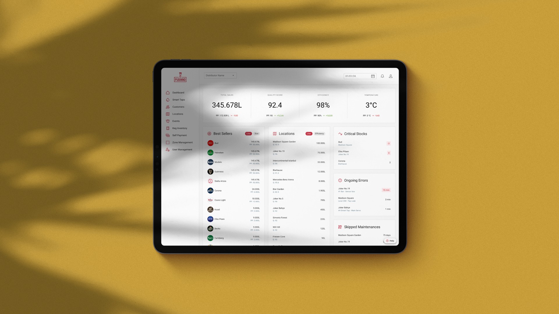Pubinno is a technology company focused on optimizing beverage operations through data, automation, and connected systems. As part of this vision, Perfect Beer was developed as a B2B web-based platform that enables beer-focused businesses to monitor sales performance and operational data with clarity and control.